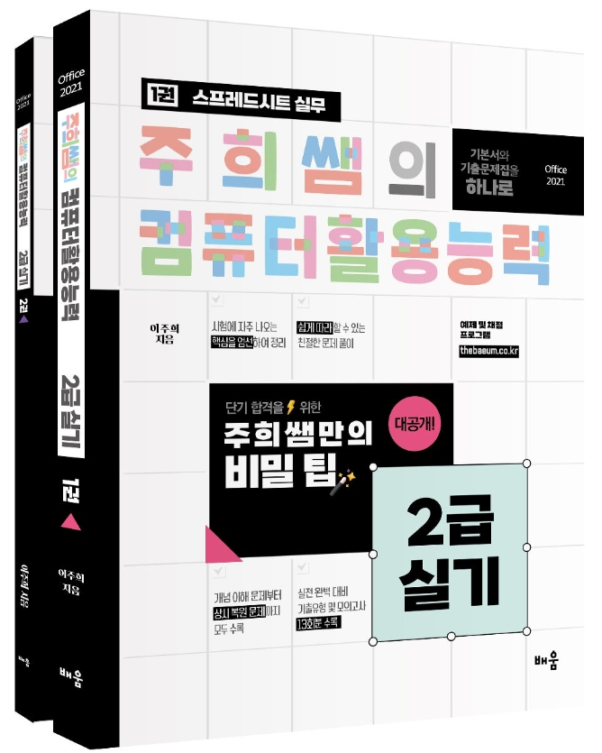 교재명 : 주희쌤의 컴퓨터활용능력 2급 실기 출판사 : 배움(출판일 : 2023) 저자 : 이주희 교재구매 https://smartstore.naver.com/nanumseepass/category/38d0ab3bd5054e5793aca47461d9ec4d |